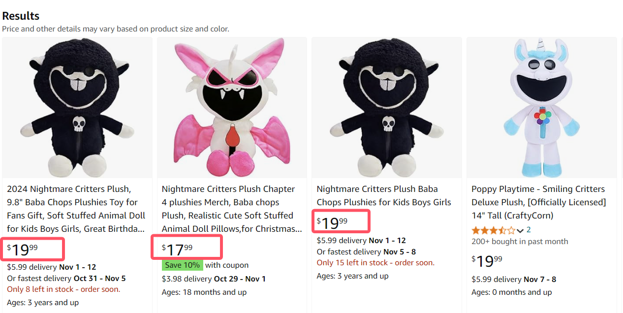 The 3Pcs Only $29.99, The product is $21 lower than Amazon's price,Official Nightmare Critters Plush 8pcs only $99.99, is $32 lower than Amazon's price, Shop Now!